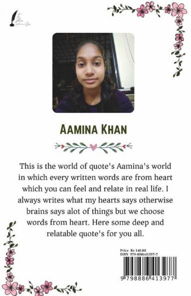 <p>This is the world of Quote Aamina's world in which every written words are from heart which you can feel and relate in real life. I always wrIt's what my hearts says otherwise brains says a lot of things but we choose words from heart. Here some deep and relatable Quote's for you all.</p>