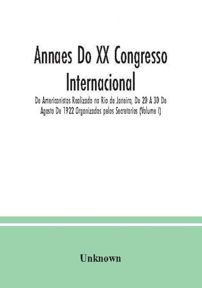 Annaes Do XX Congresso Internacional De Americanistas Realizado no Rio de Janeiro De 20 A 30 De Agosto De 1922 Organizados pelos Secretorios (Volume I)