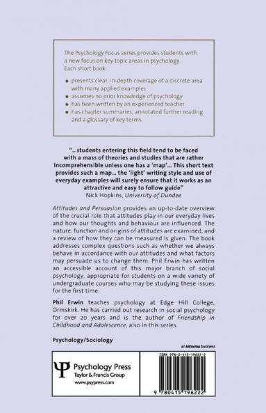 <p><em>Attitudes and Persuasion</em> provides an up-to-date overview of the crucial role that attitudes play in our everyday lives and how our thoughts and behaviour are influenced. The nature function and origins of attitudes are examined and a review of how they can be measured is given. The book addresses complex questions such as whether we always behave in accordance with our attitudes and what factors may influence us to change them.</p>