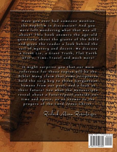 Have you ever had someone mention the Nephilim? And it left you with a ton of questions? Well this book answers those age-old questions about the giants of the Bible; and gives the reader a look behind the veil of mystery and deceit. We discuss a Giant Lie and a Giant Truth Flat-Earth UFOs Time-Travel and much more!It might surprise you that our primary reference for these topics will be the Bible! Scriptures do hold the key to these Gargantuan humans from our past but they also give us a peek at our ultimate future! Ours is to discover a future/past outside our time and space; that is relevant in answering the very prayers of the Lord Jesus Christ.I understand how fiction sells three to one so if our studies reference guides or casual late-night reading; has the Nephilim as some hybrid spawn of fallen angels; we are reading pure fiction! I am not against fantasy; in fact it is pretty entertaining however; on this topic it is where Mythology and Theology collide!This books primary source material is the KJV Bible and its historical collaborative manuscripts; any extra-biblical Pseudepigrapha citation is merely for comparative reference. The Bible is the greatest historical document we hold in our hands archeologically sound and dating back to pre-historic times; why would we consider any thing of questionable dating and authorship?Considering such a great historical document and the decades it has taken me to see its unquestionable clarity and congruency; this revelation was starring me in the face the whole time! Hiding in plain sight if you will or rather hiding in plain Hebrew!Just a handful of scripture references and indeed one single Hebrew word have unlocked a world of confusion and conjecture! Ill give you a hint: A name by any other is still Shem! I know you will find this book a refreshing new perspective.I have invested almost 40 years as a bible student volunteered as a church planter and minister spending a good part of my life researching every angle of angel conspiracies. Finding most to be doctrines of demons and endless fables meant to entice and intrigue. The problem is to this point there hasnt been a definitive work and reference to tie-up theological loose ends!I have found that many renowned theologians have washed their proverbial hands of this matter and have resigned themselves to holding the status quo by quoting some others doing the same. To this point we have all the questions; it is high time for some answers! I have yet to find a study that addresses the core discovery that this one unearths! I will give you a hint: A name by any other... is still SHEM! To say the least I am excited about setting this record straight because it opens up a whole new world of study!When you have eliminated the impossible whatever remains however improbable... must be the truth!-Sir Arthur Conan Doyle (Sherlock Holmes)
