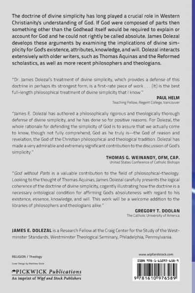 The doctrine of divine simplicity has long played a crucial role in Western Christianitys understanding of God. It claimed that by denying that God is composed of parts Christians are able to account for his absolute self-sufficiency and his ultimate sufficiency as the absolute Creator of the world. If God were a composite being then something other than the Godhead itself would be required to explain or account for God. If this were the case then God would not be most absolute and would not be able to adequately know or account for himself without reference to something other than himself. This book develops these arguments by examining the implications of divine simplicity for Gods existence attributes knowledge and will. Along the way there is extensive interaction with older writers such as Thomas Aquinas and the Reformed scholastics as well as more recent philosophers and theologians. An attempt is made to answer some of the currently popular criticisms of divine simplicity and to reassert the vital importance of continuing to confess that God is without parts even in the modern philosophical-theological milieu.