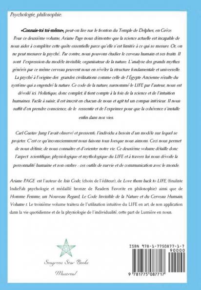 «Connais-toi toi-même» peut-on lire sur le fronton du sanctuaire de Delphes ce centre rayonnant du monde grec antique. Dans ce deuxième volume Ariane Page nous montre que la science actuelle nest pas efficace pour cette quête parce quelle ne considère que ce qui se mesure. Notre vie pychique est dès lors une énigme pour elle. Par contre puisque lhumain est bâti sur le même modèle que la nature les grands mythes peuvent nous révéler la structure de la psyché humaine qui a permis lédification des grandes civilisations. Au coeur des mythes fondateurs dancienne Égypte lauteur a trouvé ce modèle de la nature ce code invisible de la physique quantique. En lassociant au système taoïste qui est à la base de la civilisation chinoise et en le confrontant aux données des recherches sur le cerveau elle nous décrit un modèle simple une nouvelle approche en psychologie qui tient compte à la fois de la science et de lintuition humaine. Ce modèle peut être saisi par tous puisquil est le modèle universel naturel qui tel un compas habite en chacun de nous. Il suffit que nous en prenions conscience le ressentions et lamenions à la surface pour que la cohérence sinstalle dans nos vies. Carl Gustav Jung lavait observé et pressenti; lhumain a besoin dun modèle sur lequel se projeter. Ceci lemmène alors à se définir à se connaître et à orienter sa vie. La personnalité nous sert dinterface entre lêtre intérieur inconscient lêtre conscient et le monde. La connaître nous permets de prendre conscience des frustrations imposées à notre être total et des incohérences de nos diverses manifestations physique émotive mentale et sociale. Celles-ci sont le prix à payer afin de sadapter au modèle social actuel qui lui porte les marques de notre immaturité de jeune espèce. Cette partie de notre ombre une fois montrée au jour nous permettra dentrevoir notre individualité celle que nous devons développer pendant notre vie pour devenir entiers et heureux. Ce deuxième volume détaille donc laspect scientifique et mythologique de ce nouveau modèle universel du LIFE et à travers lui nous dévoile la personnalité et son ombre ces outils de survie dans le monde.