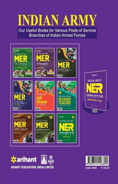 The Indian Army conducts Soldier General Duty NER Recruitment Examination for recruitment to the post of Soldier General Duty (GD) in the army. A candidate recruited through the Indian Army Soldiers General Duty NER Exam can become a Commissioned Officer subject to certain conditions. This book has been designed for the aspirants preparing for Indian Army NER General Duty Recruitment Examination. The present revised edition for Indian Army General Duty NER Recruitment Examination has been divided into four parts namely General Knowledge Numerical Ability and Computer Knowledge each sub-divided into number of chapters as per the syllabi of the recruitment examination. Ample number of solved problems designed on the lines of questions asked in previous years' General Duty NER Recruitment Examination have been provided in each chapter. Unsolved practice exercises have also been provided at the end of each chapter to help aspirants practice the concepts covered in the chapter. As the book contains ample number of solved as well practice questions it for sure will aspirants score high in the upcoming Indian Army General Duty NER Recruitment Examination.