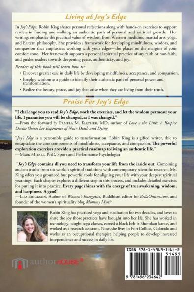 <div id=00N40000001lfFy_ileinner>In Joy&rsquo;s Edge Robin King shares personal reflections along with hands-on exercises to support readers in finding and walking an authentic path of personal and spiritual growth. Her writings emphasize the practical value of wisdom from Western medicine martial arts yoga and Eastern philosophy. She provides a framework for developing mindfulness wisdom and compassion that emphasizes working with your edges&mdash;the places on the margins of your comfort zone. Her framework supports a personal spiritual practice of any faith or non-faith and guides readers towards deepening peace authenticity and joy. <br /><br />Readers of this book will learn how to: <br />&bull; Discover greater ease in daily life by developing mindfulness acceptance and compassion. <br />&bull; Employ wisdom as a guide to identify their authentic path of personal power and transformation. <br />&bull; Realize the beauty peace and joy that arise when they are living from their truth.</div>