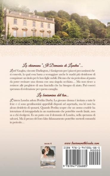 LO CHIAMANO IL DEMONIO DI LONDRA ...Lord Vaughn visconte Darlington è famigerato per i piaceri peccaminosi che si concede la qual cosa basta a scoraggiare anche le madri più desiderose di conquistare un titolo per le loro figlie nubili. Dicono che sia pericoloso al punto da poter rovinare una donna con una singola occhiata... Ma non riesce a resistere alle preghiere di una fanciulla che ha bisogno di aiuto. Può esserci speranza di redenzione per questa canaglia.LA BENIAMINA DEL TON...Lintera Londra adora Perdita Darby. La giovane donna è invitata a tutte le feste e ci sono gentiluomini appetibili disposti ad aspettarla ma lei non ha alcun desiderio di sposarsi. Quando Perdita scopre che un uomo crudele ha intenzione di intrappolarla in un matrimonio che potrebbe esserle fatale non sa a chi rivolgersi. Fa un patto con il demonio di Londra nella speranza di salvarsi. Ma il prezzo del loro falso fidanzamento potrebbe metterli entrambi in pericolo...