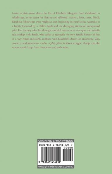 Ladies a plate please charts the life of Elizabeth Macguire from childhood to middle age in her quest for identity and selfhood. Activist lover sister friend Elizabeth follows her own rebellious star beginning in rural sixties Australia in a family fractured by a childs death and the damaging silence of unexpressed grief. Her journey takes her through youthful romances to a complex and volatile relationship with Sarah who seeks to reconcile her own family history of loss in a way which inevitably conflicts with Elizabeths desire for autonomy. Wry evocative and humorous Ladies a plate please is about struggle change and the secrets people keep from themselves and each other.