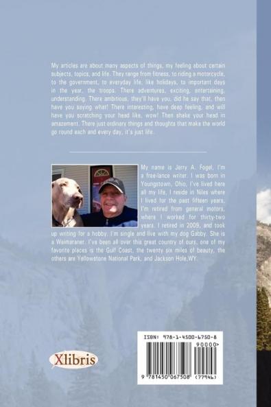 My articles are about many aspects of things my feeling about certain subjects topics and life. They range from from fitness to riding a motorcycle to the government to everyday life like holidays to important days in the troops. There adventures exciting entertaining understanding. There ambitious theyll have you did he say that then have you saying what! There interesting have deep feeling and will have you scratching your head like wow! Then shake your head in amazement. There just ordinary things and thoughts that make the world go round each and every day its just life