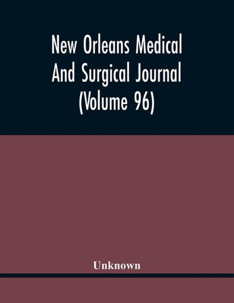 New Orleans Medical And Surgical Journal (Volume 96) has been considered by academicians and scholars of great significance and value to literature. This forms a part of the knowledge base for future generations. So that the book is never forgotten we have represented this book in a print format as the same form as it was originally first published. Hence any marks or annotations seen are left intentionally to preserve its true nature.