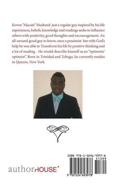 This is a collection of my daily thoughts life experiences and readings designed to help you live a positive life. If you are like me you would have spent your whole life conforming to the status quo being negative lacking self confidence and moving aimlessly . One day I remember someone encouraging me telling me that there are levels to myself that the world has not seen and it would be up to me to decide if I would display my greatness. In 2006 I made a decision to live a positive life but it would take me up to seven years to see the fruits of my labor. In 2013 I worked as an intake specialist. And with no formal training in counseling I realized that apparently people would trust me and tell me all there issues and problems. At first I was a little afraid but I started praying asking God to help me say the right things to the people I interact with. Soon enough I was becoming a positive motivational light in my workplace. People would come into my office sad but leave with bright smiles upon leaving. I realized that this is what God wanted for me to do . The Bible says Study to show yourself approved (2 Timothy 2:15). I began reading motivational self-help books; watching videos of speakers such as Les Brown Zig Ziglar Earl Nightingale Dr. Norman Vincent Peale Napoleon Hill MLK T. D. Jakes and Brendon Burchard; and looking up thousands of positive quotes and affirmations. I realized that I can take my life experiences and stories and use them for positive enforcement to help others and the idea to write this book was born. I know that when you read this book it will entertain you put a smile on your face and last but not least help you to reengineer you mentality toward embracing a positive mind-set. You will look for the positives in life and not the negatives. You will start seeking opportunity and stop complaining about circumstances. You will see the good in everything and everybody. You will learn how to control your emotions and not let your emotions control you. You will be on the road toward bettering yourself. My life was altered because someone spoke something positive into me; therefore I aim to speak positivity into you. This book is for people just like me who have struggled with doubt/unbelief self-pity unforgiveness jealousy negative / pessimistic thinking anger/bitterness and all the other factors that helped to create a defeatist outlook and fatalistic attitude toward life. I know this book will touch and impact you positively once you adopt an open mind and heart. Eat sleep and live positivity.