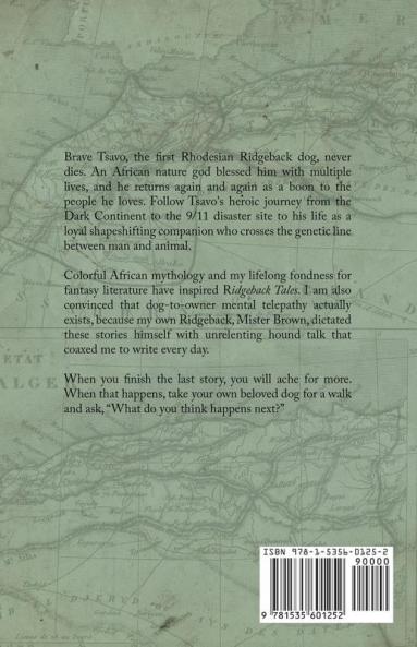 Brave Tsavo the first Rhodesian Ridgeback dog never dies. An African nature god blessed him with multiple lives and he returns again and again as a boon to the people he loves. Follow Tsavos heroic journey from the Dark Continent to the 9/11 disaster site to his life as a loyal shapeshifting companion who crosses the genetic line between man and animal.Colorful African mythology and my lifelong fondness for fantasy literature have inspired Ridgeback Tales. I am also convinced that dog-to-owner mental telepathy actually exists because my own Ridgeback Mister Brown dictated these stories himself with unrelenting hound talk that coaxed me to write every day.When you finish the last story you will ache for more. When that happens take your own beloved dog for a walk and ask What do you think happens next?