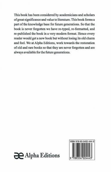This book has been considered by academicians and scholars of great significance and value to literature. This forms a part of the knowledge base for future generations. So that the book is never forgotten we have represented this book in a print format as the same form as it was originally first published. Hence any marks or annotations seen are left intentionally to preserve its true nature.