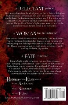 <p><em>A reluctant prince</em></p><p>After more than three hundred years on Earth Prince Ralan has finally returned to Moranaia. But with his wicked brother Kien on the loose the homecoming is a short one. A dire vision sends Ralan back to Earth to save his soulbonded from his dark brother. The problem? Ralan&rsquo;s Sight grows more erratic by the moment even as danger closes in on every side.</p><p><em>A woman far from home</em></p><p>Ever since a failed alliance ruined her family Cora has lived on Earth. Far from discontent her days are spent running her clothing shop and helping newly arrived fae adapt to mundane life. Then a golden-eyed prince strides into her store trouble stalking his heels. Big trouble.</p><p><em>A fate foretold</em></p><p>Ralan&rsquo;s Sight might be broken but one thing remains clear&mdash;stopping Kien will mean Ralan&rsquo;s death. So how could the Gods choose now to introduce his soulbonded? As Ralan and Cora search for Kien their relationship grows stronger. Unfortunately so does the threat. Now Ralan must choose between his own life and the fate of all their worlds.</p><p>&nbsp;</p>