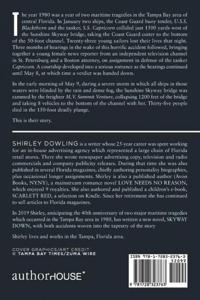 The Year 1980 Was A Year Of Two Maritime Tragedies In The Tampa Bay Area Of Central Florida. In January Two Ships The Coast Guard Buoy Tender U.S.S. Blackthorn And The Tanker S.S. Capricorn Collided Just 1500 Yards West Of The Sunshine Skyway Bridge Taking The Coast Guard Cutter To The Bottom Of The 50-Foot Channel. Twenty-Three Young Sailors Lost Their Lives That Night. Three Months Of Hearings In The Wake Of This Horrific Accident Followed Bringing Together A Young Female News Reporter From An Independent Television Channel In St. Petersburg And A Boston Attorney On Assignment In Defense Of The Tanker Capricorn. A Courtship Developed Into A Serious Romance As The Hearings Continued Until May 8 At Which Time A Verdict Was Handed Down.In The Early Morning Of May 9 During A Severe Storm In Which All Ships In Those Waters Were Blinded By The Rain And Dense Fog The Sunshine Skyway Bridge Was Rammed By The Freighter M.V. Summit Venture Collapsing 1200 Feet Of The Bridge And Taking 8 Vehicles To The Bottom Of The Channel With Her. Thirty-Five People Died In The 150-Foot Deadly Plunge.This Is Their Story.