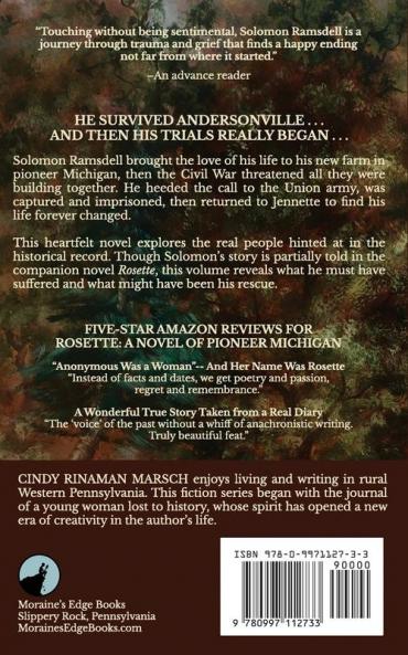 He survived Andersonville . . . and then his trials really began.Solomon Ramsdell brought the love of his life to his new farm in pioneer Michigan then the Civil War threatened all they were building together. He heeded the call to the Union army was captured and imprisoned then returned to Jennette to find his life forever changed. This heartfelt novel explores the real people hinted at in the historical record. Though Solomons story is partially told in the companion novel ROSETTE this volume reveals what he must have suffered and what might have been his rescue.Touching without being sentimental SOLOMON RAMSDELL is a journey through trauma and grief that finds a happy ending not far from where it started.