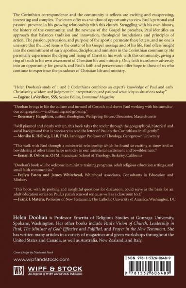 The Corinthian correspondence and the community it reflects are exciting and exasperating interesting and complex. The letters offer us a window of opportunity to view Pauls personal and pastoral presence in his growing relationship with this church. Struggling with his own history the history of the community and the newness of the Gospel he preaches Paul identifies an approach that balances tradition and innovation theological foundations and principles of action. The passion persuasion and purpose of the apostle permeate these letters and no one is unaware that the Lord Jesus is the center of his Gospel message and of his life. Paul offers insight into the commitment of early apostles disciples and ministers in the Corinthian community. He personally experiences the dying and rising of Christ in his work with this community giving a ring of truth to his own assessment of Christian life and ministry. Only faith transforms adversity into an opportunity for growth and Pauls faith and perseverance offer hope to those of us who continue to experience the paradoxes of Christian life and ministry. Doohan brings to life the culture and turmoil of Corinth and shows Paul working with his tumultuous congregation--and learning and growing. --Rosemary Haughton author; theologian; Wellspring House Gloucester Massachusetts Helen Doohans study of 1 and 2 Corinthians combines an experts knowledge of Paul and early Christianity wisdom and judgment in interpretation and pastoral sensitivity to situations today. --Eugene LaVerdiere SSS Senior Editor Emmanual Magazine This masterly book broadens the definitions of ministry. . . . Helen and clearly written this book takes the reader through the geographical historical and social background that is necessary to read the letter of Paul to the Corinthians intelligently. --Monika K. Hellwig LLB PhD Landegger Professor of Theology Georgetown University This walk with Paul through a ministerial relationship that he found so exciting at times and so bewildering at other times helps us today in our ministerial excitement and bewilderment. --Kenan B. Osborne OFM Franciscan School of Theology Berkeley California Doohans book will be welcome in ministry training programs adult religious education settings and small faith communities. --Evelyn Eaton and James Whitehead Whitehead Associates Consultants in Education and Ministry This book with its probing and insightful questions for discussion could serve as the basis for an adult education series on Paul a parish renewal series as well as a classroom text. --Frank J. Matera Professor of New Testament The Catholic University of America Washington DC Helen Doohan is Professor Emerita of Religious Studies at Gonzaga University Spokane Washington. Her other books include Pauls Vision of Church Leadership in Paul The Minister of God: Effective and Fulfilled and Prayer in the New Testament. She has written many articles in a variety of magazines and given workshops throughout the United States and Canada as well as in Australia New Zealand and Italy.