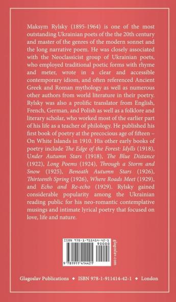 Maksym Rylsky (1895-1964) is one of the most outstanding Ukrainian poets of the the 20th century and master of the genres of the modern sonnet and the long narrative poem. He was closely associated with the Neoclassicist group of Ukrainian poets, who employed traditional poetic forms with rhyme and meter, wrote in a clear and accessible contemporary idiom, and often referenced Ancient Greek and Roman mythology as well as numerous other authors from world literature in their poetry. Rylsky was also a prolific translator from English, French, German, and Polish as well as a folklore and literary scholar, who worked most of the earlier part of his life as a teacher of philology. He published his first book of poetry at the precocious age of fifteen</br>On White Islands in 1910. His other early books of poetry include The Edge of the Forest: Idylls (1918), Under Autumn Stars (1918), The Blue Distance (1922), Long Poems (1924), Through a Storm and Snow (1925), Beneath Autumn Stars (1926), Thirteenth Spring (1926), Where Roads Meet (1929), and Echo and Re-echo (1929). Rylsky gained considerable popularity among the Ukrainian reading public for his neo-romantic contemplative musings and intimate lyrical poetry that focused on love, life and nature. While his poetry was completely apolitical, at the end of the Ukrainian cultural renaissance in the 1920s that was crushed by Stalin, Rylsky was sternly rebuked in the state-controlled press for focusing on the personal and not writing in service to the state. In 1931 the Soviet secret police, the NKVD, arrested and publicly humiliated him. He was released in 1932 after he agreed to write in the style of socialist realism and was one of the few prominent Ukrainian writers to survive the Stalinist purges of the 1930s. During the wartime period he wrote two masterful long poems that deviated from socialist realism</br>"Thirst" (1942) and "Journey to Youth" (1941-4), for which he was again publicly chastised. In 1942 he became Director of the Institute of Fine Arts, Folklore and Ethnography in Kyiv, a post that he held until his death in 1964. The Institute now bears his name. He published some 30 collections of original poetry during his lifetime as well as numerous translations and scholarly works. By 1974 almost five million copies of his works in the original or in translation had appeared in the USSR. In his last two books</br>In the Shadow of the Lark (1961) and Winter Notes (1964) published during The Thaw, a period of relaxed censorship during the reign of Nikita Khrushchev, Rylsky's poetic voice returned to the stature of his early poetry. This selected works edition includes poetry from virtually all of Rylsky's early collections of poetry, with selection primarily based on esthetic principles; the powerful long poem "Thirst," penned during the darkest days of World War II for Ukraine; and other poems from various periods of his life.Translated by Michael M. Naydan.With a guest introduction by Maria Zubrytska.
