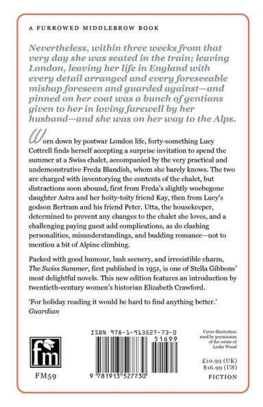 Nevertheless, within three weeks from that very day she was seated in the train; leaving London, leaving her life in England with every detail arranged and every foreseeable mishap foreseen and guarded against-and pinned on her coat was a bunch of gentians given to her in loving farewell by her husband-and she was on her way to the Alps.Worn down by postwar London life, forty-something Lucy Cottrell finds herself accepting a surprise invitation to spend the summer at a Swiss chalet, accompanied by the very practical and undemonstrative Freda Blandish, whom she barely knows. The two are charged with inventorying the contents of the chalet, but distractions soon abound, first from Freda's slightly woebegone daughter Astra and her hoity-toity friend Kay, then from Lucy's godson Bertram and his friend Peter. Utta, the housekeeper, determined to prevent any changes to the chalet she loves, and a challenging paying guest add complications, as do clashing personalities, misunderstandings, and budding romance-not to mention a bit of Alpine climbing.Packed with good humour, lush scenery, and irresistible charm, The Swiss Summer, first published in 1951, is one of Stella Gibbons' most delightful novels. This new edition features an introduction by twentieth-century women's historian Elizabeth Crawford.'For holiday reading it would be hard to find anything better.' Guardian