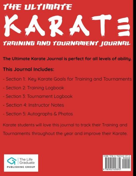 The Ultimate Karate Training and Tournament Journal is Perfect for all levels of students to Record, Track and Improve their skill level and tournament performance.The Ultimate Karate Journal has been designed specifically for young Karate students to record both training classes and tournaments throughout the year. The clear layout provides the ideal journal for karate students to document all of the information that can be used as a reflective tool for further improvement. It also provides the perfect document to keep dojo or tournament photos and collect autographs from the year.The Ultimate Karate Training and Tournament Journal includes 5 Key Sections: Section 1: Karate Goals (Training and Tournament)Section 2: Training LogbookSection 3: Tournament LogbookSection 4: Instructor NotesSection 5: Autographs and PhotosThe journal provides sections for Instructor feedback, training development and skill notes, Tournament details, results, and many more prompted questions to help Karate students include all the required information. The Journal Specifics: - 84 Pages- 8.5 x 11 inch- Training Session Templates- Tournament Templates- Pages for Instructor and Year Notes- 4 Pages for gathering autographs, training partner notes, or sticking in karate photos.This journal is the ideal resource and would also make the perfect gift for any karate student, karate friends along with a great keepsake book to reflect on in the years to come.Scroll up now and click the 'Buy Now' button to grab your copy today!