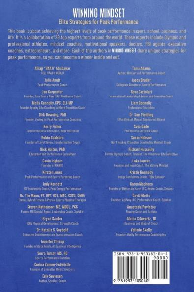 Are you performing at your very best? This book, Winning Mindset, was created to help you do just that. It is about achieving the highest level of peak performance in sports, school, business, and life. With a winning mindset, anyone can achieve more than they thought possible. This book is filled with elite strategies that allow people from all areas of life to perform at their best.Performing with a winning mindset is what separates the athletes who win Olympic medals from the thousands of other athletes (who might be just as fit and just as smart) who do not. Performing with a winning mindset is what separates entrepreneurs who build strong, profitable companies from the thousands of other (equally talented) people who fail in business.Whatever your area of performance-sports, academics, business-there are going to be individuals who succeed more than others. With this in mind, Winning Mindset is about creating a winning attitude within ourselves first and attracting actual wins in our lives as a result.This book explores the habits of people who win, the actions winners take, and the strategies winners employ. Basically, this book is a kit providing various tools you can use to create a winning mindset and to perform at your best. The number one goal in this book is to provide examples from elite athletes, coaches, and entrepreneurs on how to perform at peak levels.Who are these coaches in this book? They are performance coaches, mindset coaches, neurolinguistic programming masters, hypnotists, transformational coaches, executive coaches, keynote and TEDx speakers, meditation experts, leadership coaches, sports champions, health and wellness advocates, Tony Robbins coaches, strength and conditioning coaches, authors, doctors, PhDs, scientists, Olympic and professional athletes, and more. From the mind to the body to the spirit, the authors who contributed to this book are world-class experts in various fields who want to share their unique strategies for peak performance. These experts are from the USA, Canada, the United Kingdom, Norway, Italy, and Greece, and each wants to help you perform at your best. If you are interested in improving your performance in any area, Winning Mindset is the place to start!Co-authors of this book include Alhaji Abubakar, Tania Adams, Julia Arndt, Jason Brader, Jan Carpenter, Rose Cartolari, Molly Connolly, Liam Donnelly, Dirk Downing, PhD, Dr. Sam Fielding, Kerry Fisher, Sven Gade, Robin Goldsbro, Susan Hobson, Nick Holton, PhD, Richard Husseiny, Gavin Ingham, Luke Jensen, Kirsten Jones, Kristie Kennedy, Jody Kennett, Karen Machuca, Dr. Tim Mann, David Motto, Steven Nathenson, Anastasia Pavlatou, Bryan Sauder, Alaina Schwartz, JD, Dr. Natalia S. Seybold, Vallerie Skelly, Jennifer Stirrup, Serra Tumay, and Corina Zanner-Entwistle